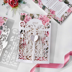 -  Elegant Pink Floral Wedding Invitation Suite, Gate Fold Embossed Heart Wedding Invites with White Lace Cover-  +sp.priceRaw ? 'price price--on-sale' : 'price'">