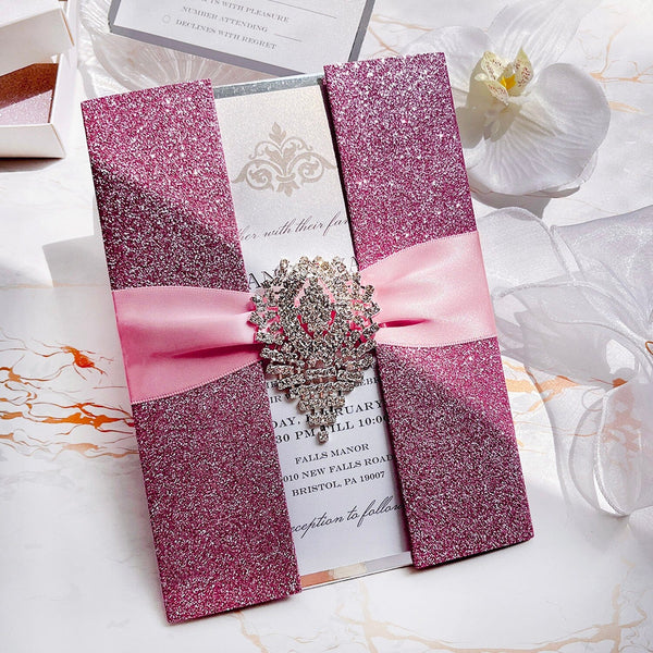 Diamond Glitter Pink Wedding Invitations