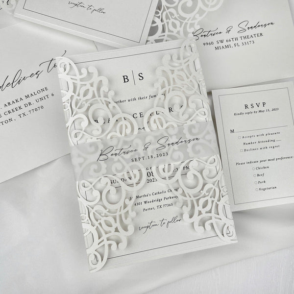 Minimalism White Wedding Invitations, 5x7 Laser Cut Invites Cards