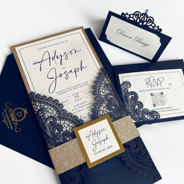 Navy and Gold Wedding Invitations Suite: