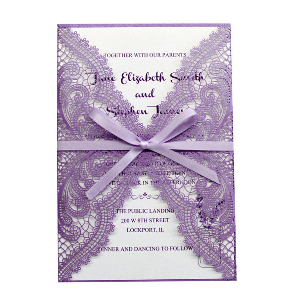 Romantic Purple Lace Wedding Invitation With RSVP Cards