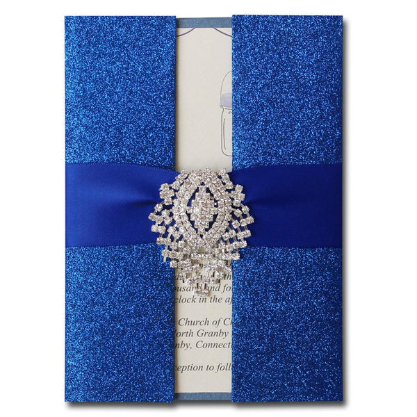 Royal Blue Wedding Invitation, Shimmer Invitation Card, Blue Invitation for Wedding